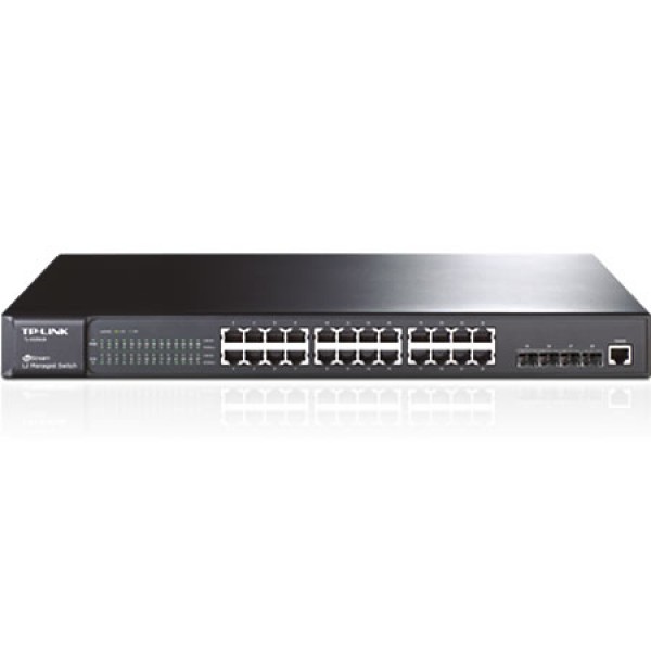 | Giao Diện | 24 cổng RJ45 tốc độ 10/100/1000Mbps (Auto Negotiation/Auto MDI/MDIX) 4 khe cắm gigabit SFP* 1 cổng Console * Khe cắm SFP chỉ hỗ trợ 1000Mbps |